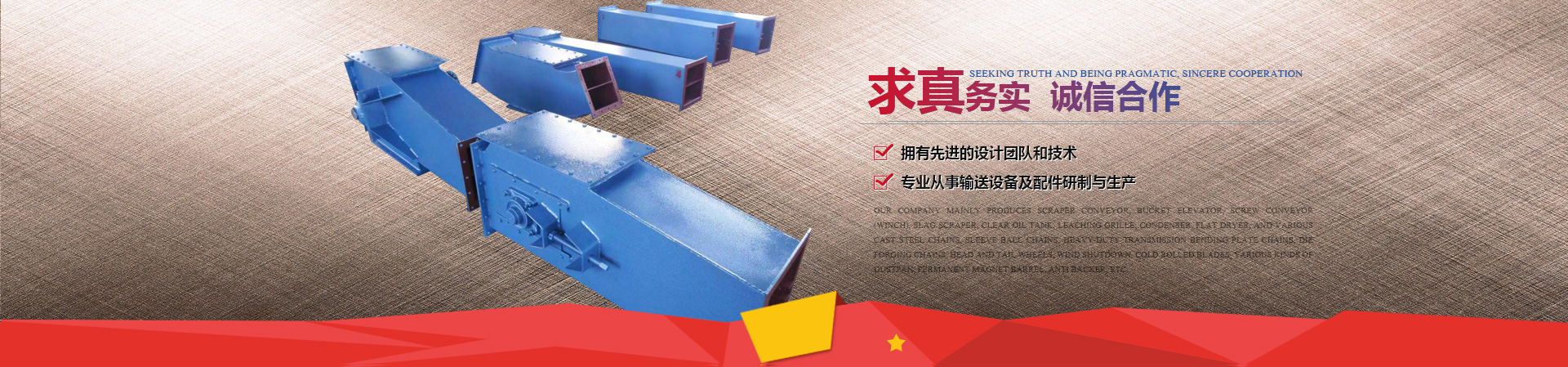 我公司主要生產碳鋼,不銹鋼等各種材質的刮板輸送機、斗式提升機、螺旋輸送機(絞龍)、刮渣機、澄油箱、浸出柵板、冷凝器、平板烘干機、以及各種鑄鋼鏈條、套筒滾珠鏈條、重載傳動彎板鏈、模鍛鏈條、頭尾輪、關風器、冷軋葉片、各種畚斗、永磁筒、止逆器等。產品銷往全國80多個省市,并出口俄羅斯、東南亞、非洲等地,受到國內外客戶一致好評。